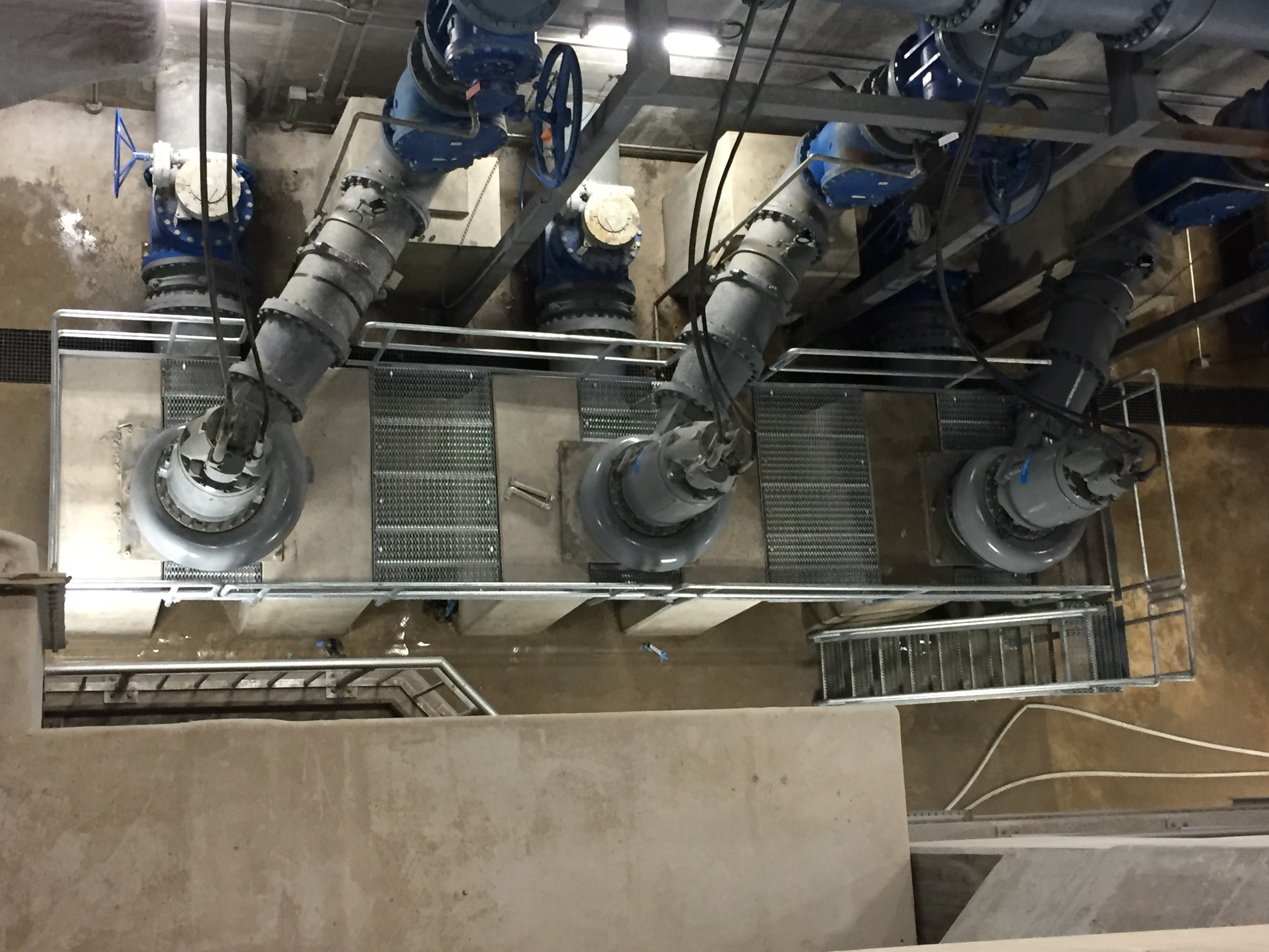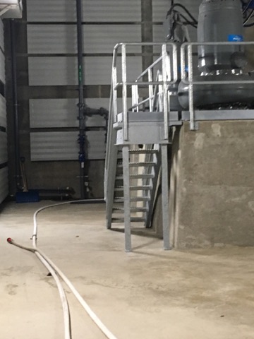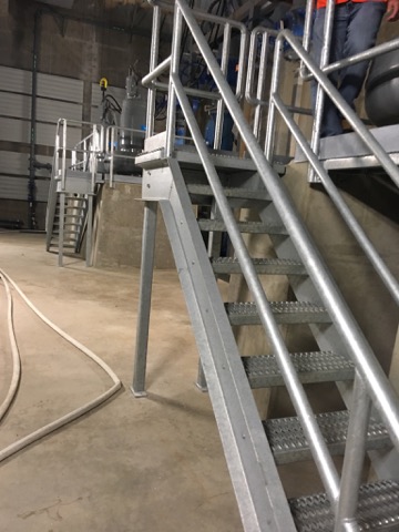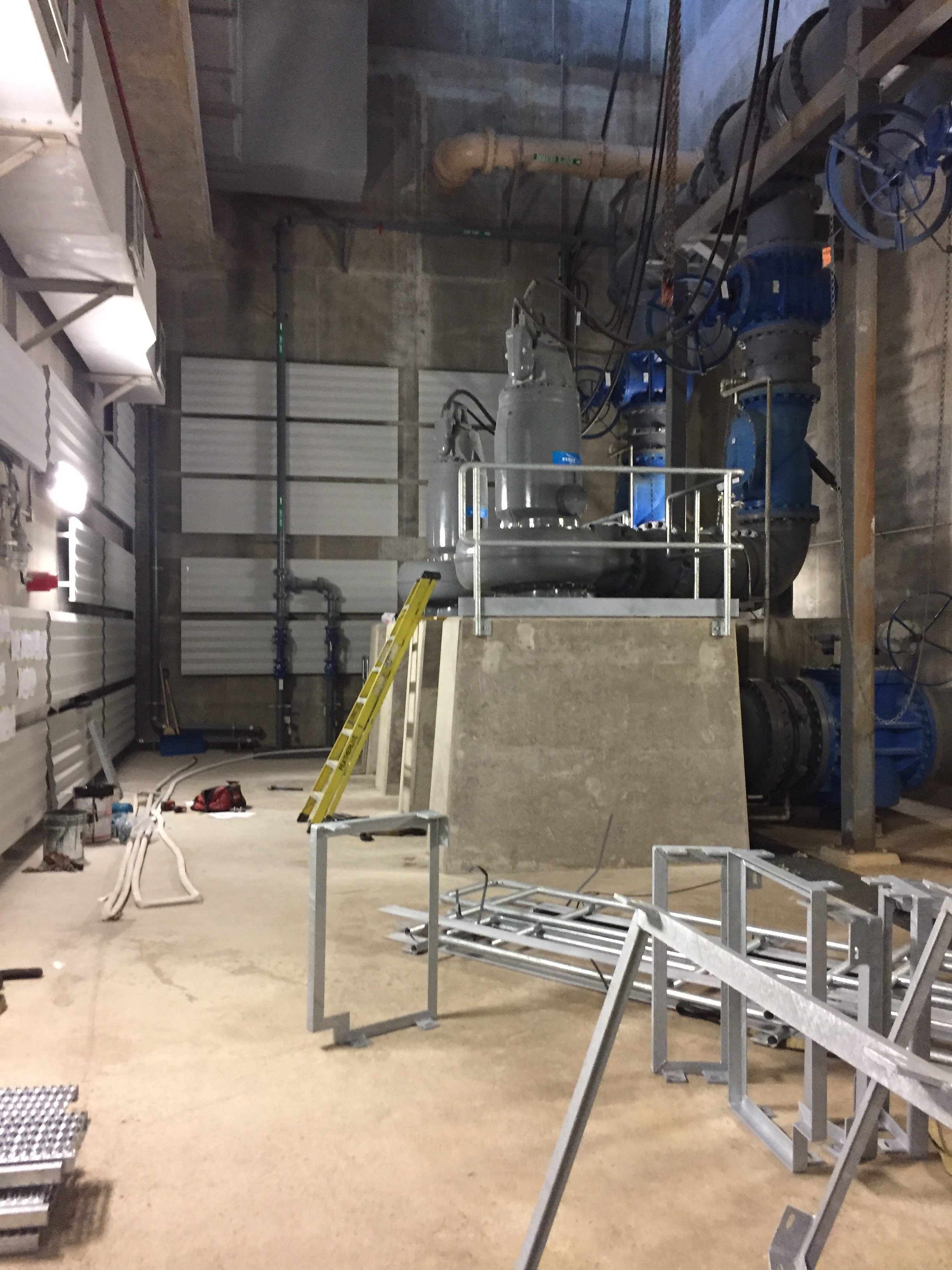 Dynamic Millwrights fabricated and installed maintenance platforms and stairways around large, pre-existing water pumps for this job.